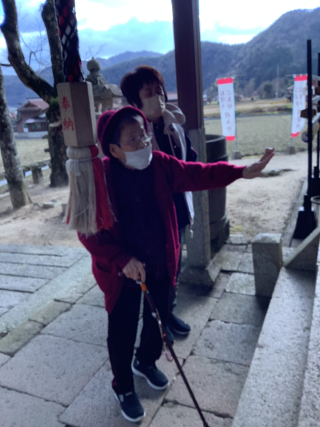 マイクロバスに乗って、船路八幡宮へ初詣に出かけました。 到着すると「懐かしいね」「拝みたい」との声が…