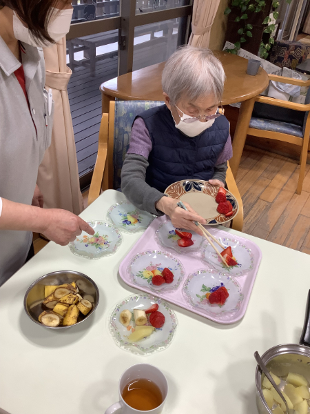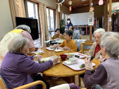 まだまだ寒さが続く時期に、おやつでぜんざいを作って食べました。ご利用者様の中から「ぜんざいが食べたい…