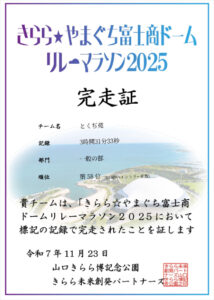 11月23日、「きらら☆やまぐち 富士商ドームリレーマラソン2025」に参加しました。