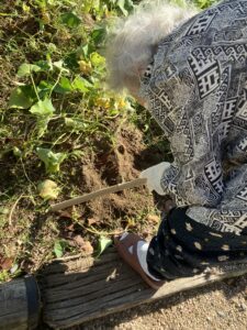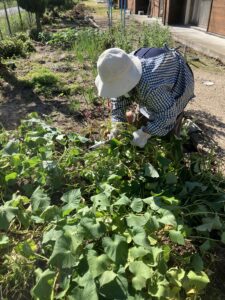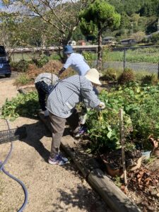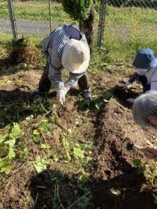 10月12日の午前中、お天気に恵まれ芋ほりをしました。先日お試しで掘った時、もう少し時期を待った方がいいと言う意見が多かったのでこの日になりました。