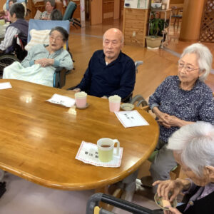 以前より、入浴で時間が重なった際に、「あんたおったんかね」と言う声を何度か耳にすることがあり、特養全体で交流が出来る機会を作りたいと思いこの井戸端会議を企画しました。