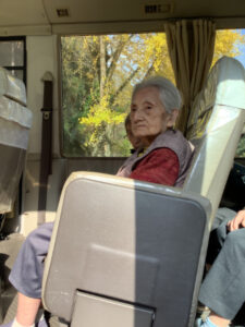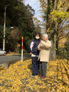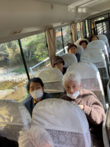 本日は、バスに乗って大原湖に紅葉見物に出かけました。銀杏は少し終わりかかっていましたが黄色のイチョウの木々と黄色のじゅうたん、滑川のせせらぎに皆さん癒されていました。