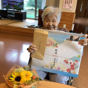 9/11に敬老会を開催し、ユニットからは百寿の方が1名、米寿の方が1名登壇されました。
