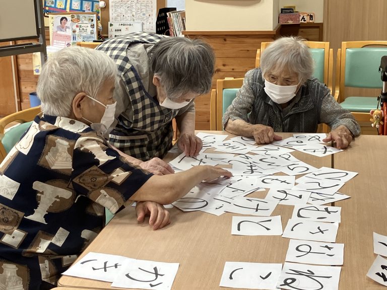 次に「カードゲーム」を行いました。あ・い・う・え・おの全カードを残さずに文字にするゲームです。