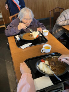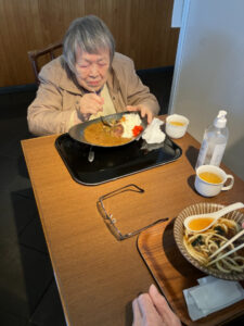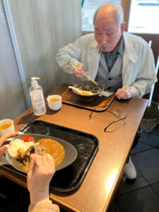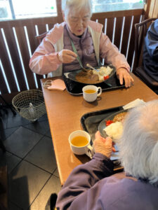 昼食は「うめてらす」。あらかじめ予約をしていたのでスムーズに食事ができました。好きな物を自分で選んでいたので、完食される人が多くおられました。