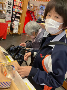 食後はお土産を購入する為に隣の店へ。店内をゆっくり見ておられました。この日参道では市がたっていましたが他の売店は定休日で梅が枝餅を買えなかったのが残念でした。