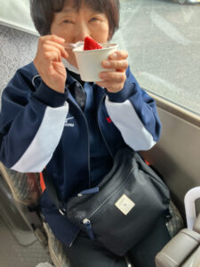 帰りにあさむらいちご園でいちごの沢山のったソフトクリームを堪能して帰ってきました。「こりゃあおいしい」と初めて食べた方もおられ喜んでいただきました。
