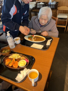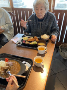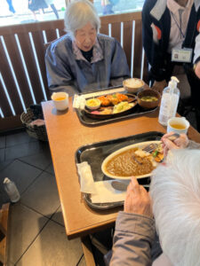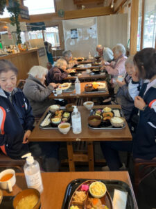 昼食は「うめてらす」。あらかじめ予約をしていたのでスムーズに食事ができました。好きな物を自分で選んでいたので、完食される人が多くおられました。