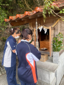 利用者様は下から拝み、代表して実習生の2人が上まで行き参拝してもらいました。