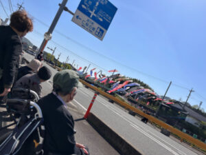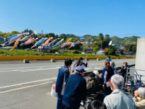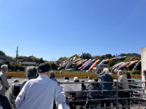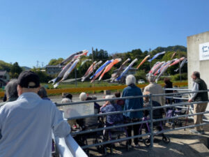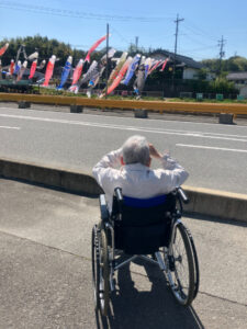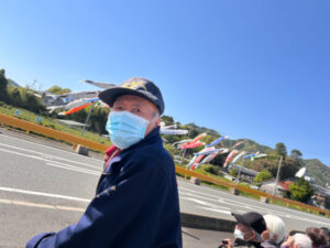 4月26日に仁保へ鯉のぼり見物に行きました。雲1つない絶好の鯉のぼり日和となりました。土曜日という事で人が多く道の駅散策はできませんでしたが、元気に泳ぐ鯉のぼりを見ながら「久しぶりにここまで来たね」「今日はいい日じゃったね」等、会話も弾んでいました。皆さんに喜んでいただき良い笑顔の写真も撮ることが出来ました。