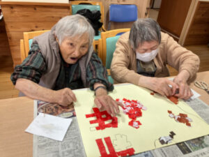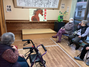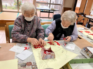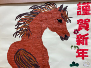 12月21日、講師をお迎えして来年の干支「午」をちぎり絵で作成しました。