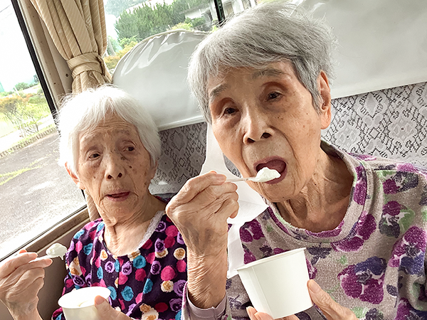 バスに乗って徳地地域の苑外活動へ出かけます。