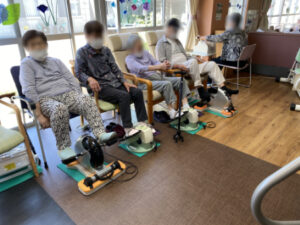 同じ運動でも負荷調整し、筋力維持を目指しています。